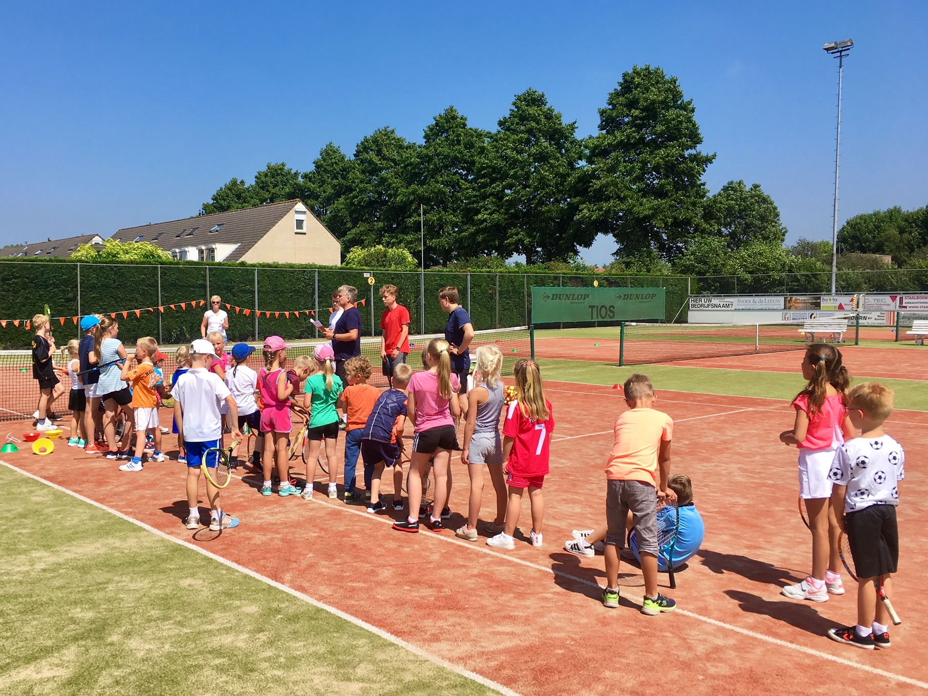 Woensdag 20 juni organiseerde TV TIOS een tennisclinic voor alle basisschoolleerlingen uit Sleeuwijk. Alle kinderen van groep 3 t/m 8 van de Morgenster en de Verschoorschool krijgen op dit moment schooltennis. De trainers van tennisschool Bas-Ta gaven in de stralende zon tips, trucs en praktische aanwijzingen. Met een aantrekkelijke aanbieding voor tennisles onder de arm ging iedereen enthousiast naar huis. Ook kennismaken met tennis? Bezoek www.tvtios.nl.